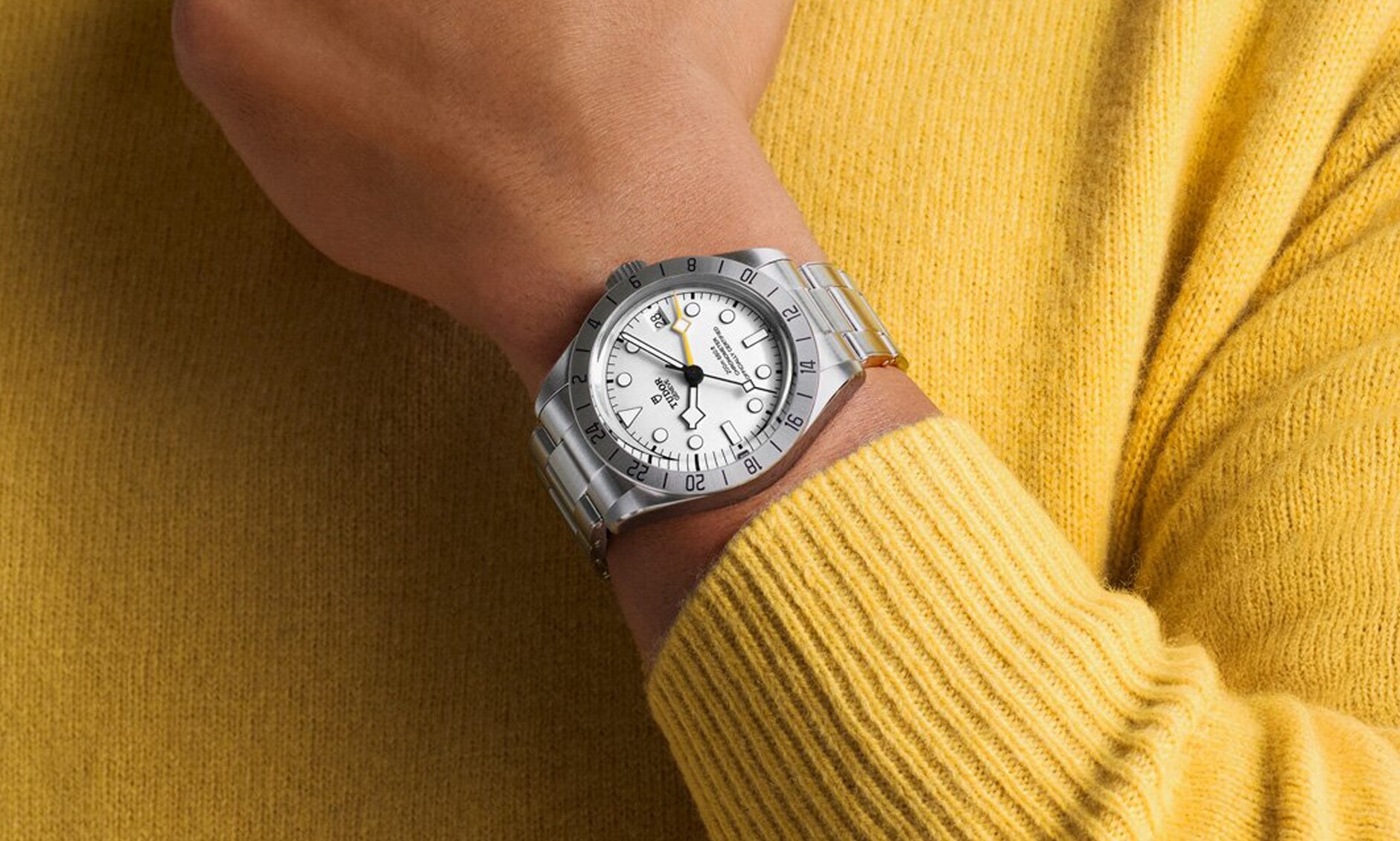Black Bay Pro is an entirely new model with a dual time zone feature, a technical complication that establishes local time without losing sight of the time in another time zone. Compact, robust and sporty, this model boasts many unique aesthetic details and celebrates the spirit of the technical watches that TUDOR has produced for professionals throughout its history. Recognisable by its 24-hour graduated satin-brushed fixed bezel and its yellow 24-hour "Snowflake" hand, Black Bay Pro is powered by the TUDOR Manufacture Calibre MT5652 with built-in GMT function.